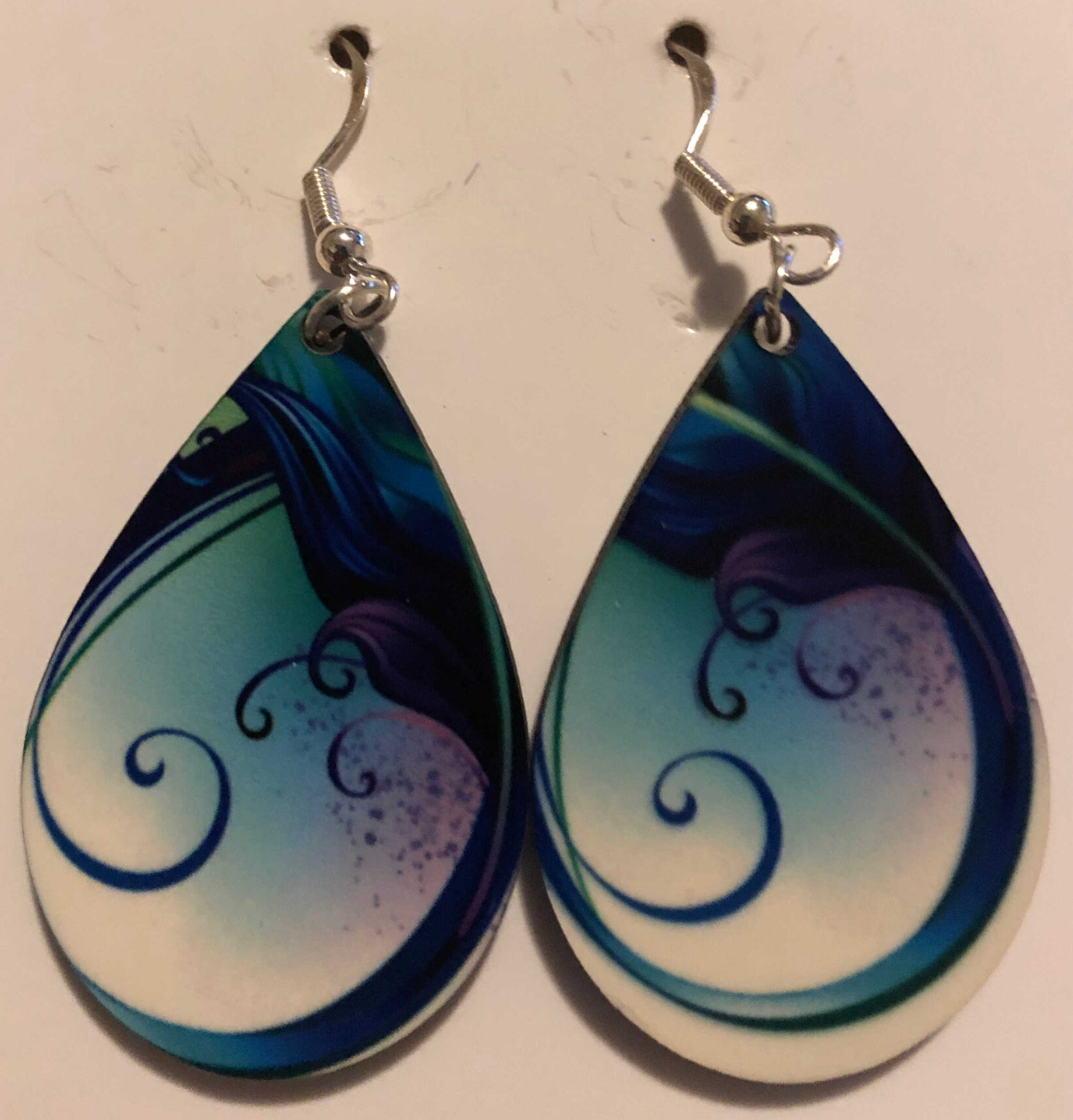 Ear Ring with blue feather print design and sterling silver hardware